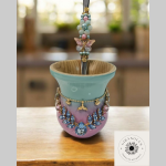 Está adornado con gemas de colores.La bombilla tambien esta decorada con perlas y mariposas cada mate tiene un diseño unico y son de alta calidad.