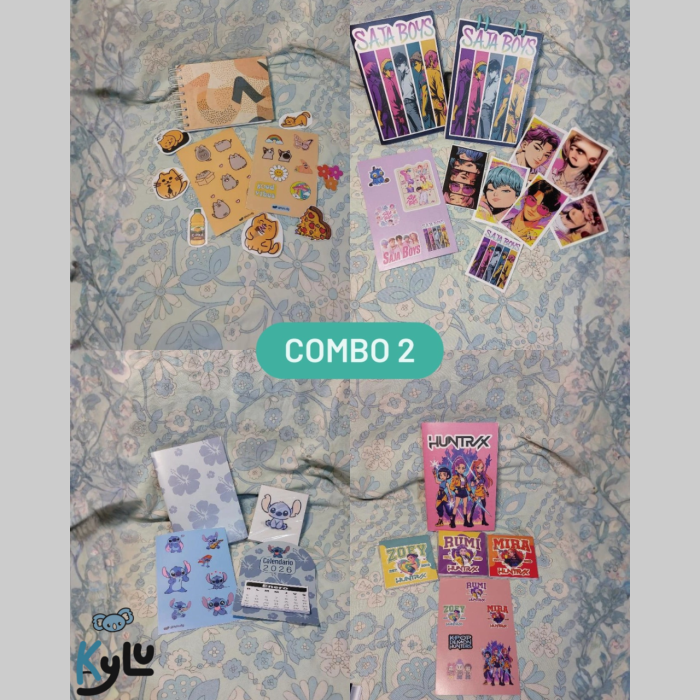 Son distintas opciones que incluyen stickers, notitas, cuaderno A6, plancha de sticker.