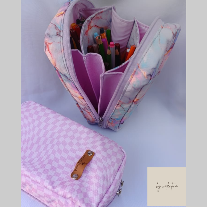 -Cuenta con tres divisiones y 2 bolsillos de nylon cristal, si busc´´as una cartuchera súper amplia este modelo es ideal! -Cartuchera chica estampada $12.000